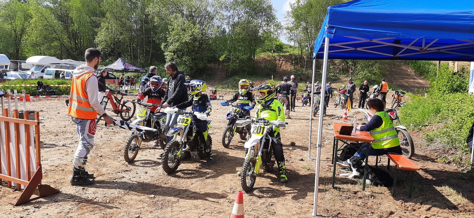 Die Strecke sah top aus, das Wetter war ideal, es war wieder angerichtet für ein langes Enduro Wochenende! Bereits am Vorabend reisten viele Teilnehmer erkundeten die Strecke. Der Start erfolgte unten neben den Fahrerlager und führte gegen den Uhrzeigersinn über das Vereinsgelände. Es gab verschiedene Streckenführungen für die verschiedenen Klassen. Vormittags wurde für die jüngsten Fahrer ein einfacherer Kurs abgesteckt. Die technisch anspruchsvollere Runde wurde am Nachmittag gefahren, die mit roten und gelben Pfeilen für die verschiedenen Klassen nochmals unterteilt war.